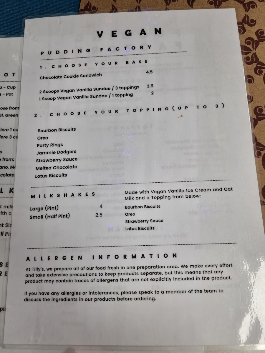 Tilly's Cafe & Desserts Menu